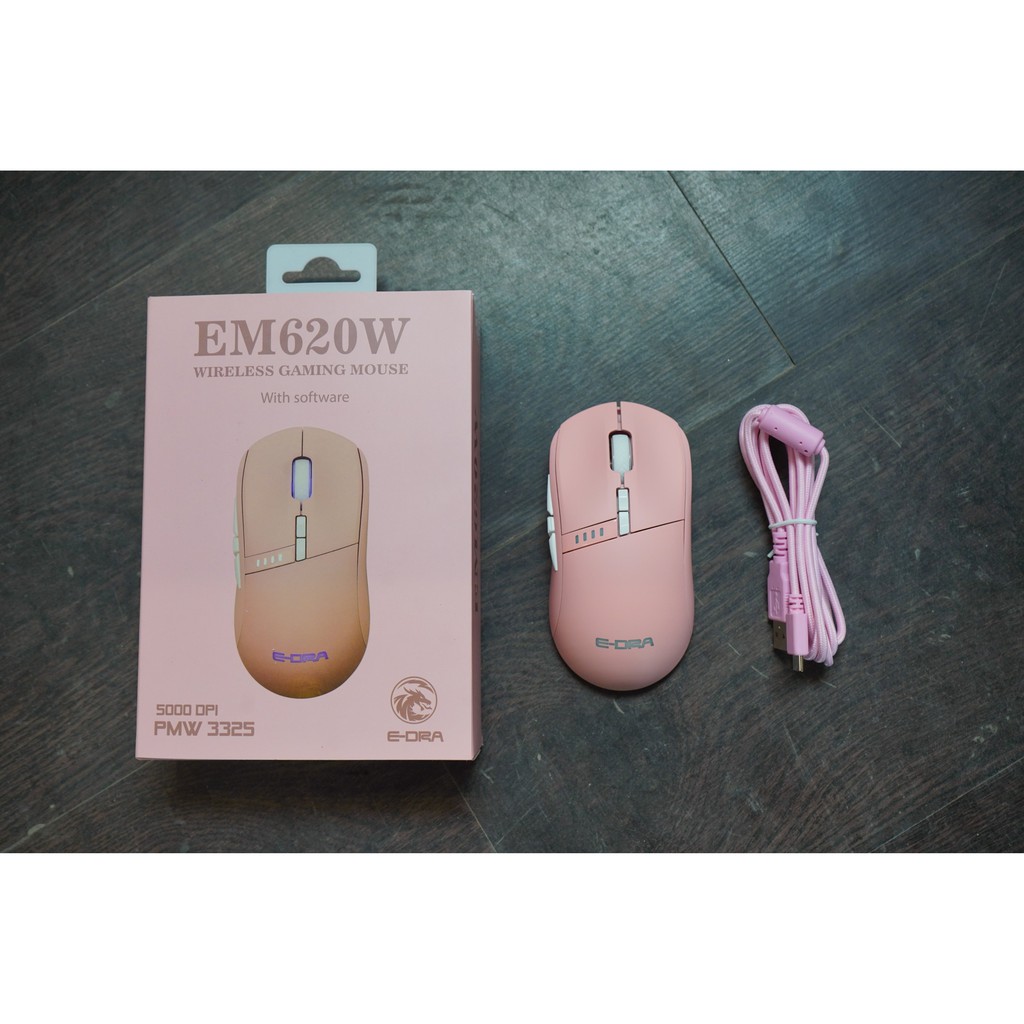 Máy tính & Laptop > Chuột & Bàn Phím > Chuột Máy Tính || Chuột gaming không dây E-Dra EM620W Pink RGB, Avago 3325 (Wireless/ USB Type-C) version 2021Còn hàng