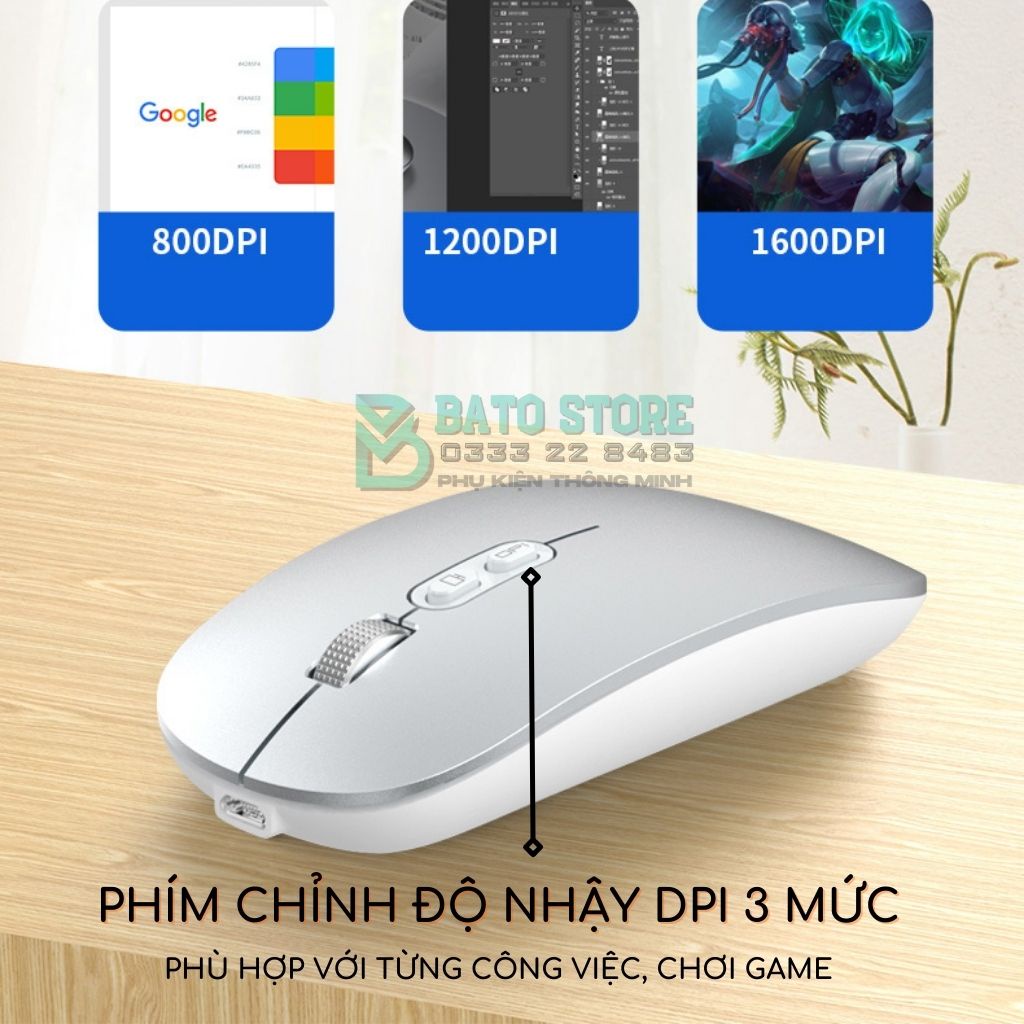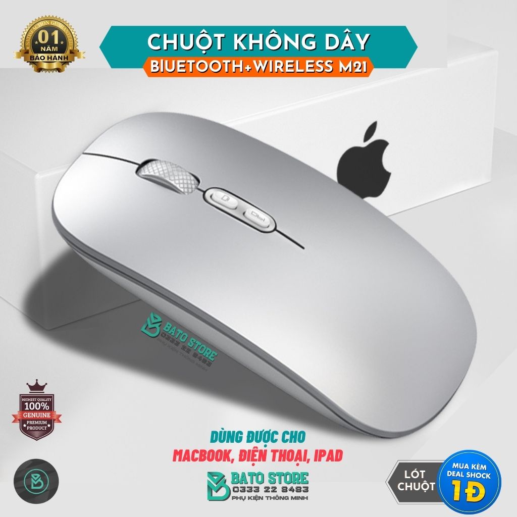 LƯU Ý: Chuột có 2 loại: Có kết nối Bluetooth+Wireless, Loại 2 chỉ có kết nối Wireless qua cổng USB.