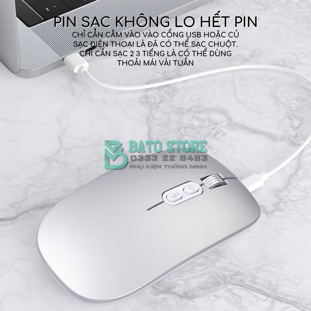 Chuột Không dây Bluetooth/ Wireless M103 Pin Sạc Dùng Cực Lâu 1 Tháng, Click Siêu Êm Không Tiếng, 1600DPI - Kèm cáp sạc