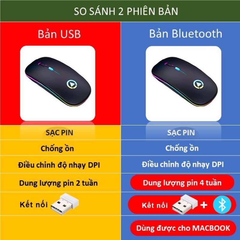 Giới thiệu Chuột Không Dây Bluetooth Và USB 2.4 YINOIAO A2 LED RGB Không Tiếng Ồn Bảo Hành Lỗi Đổi Mới