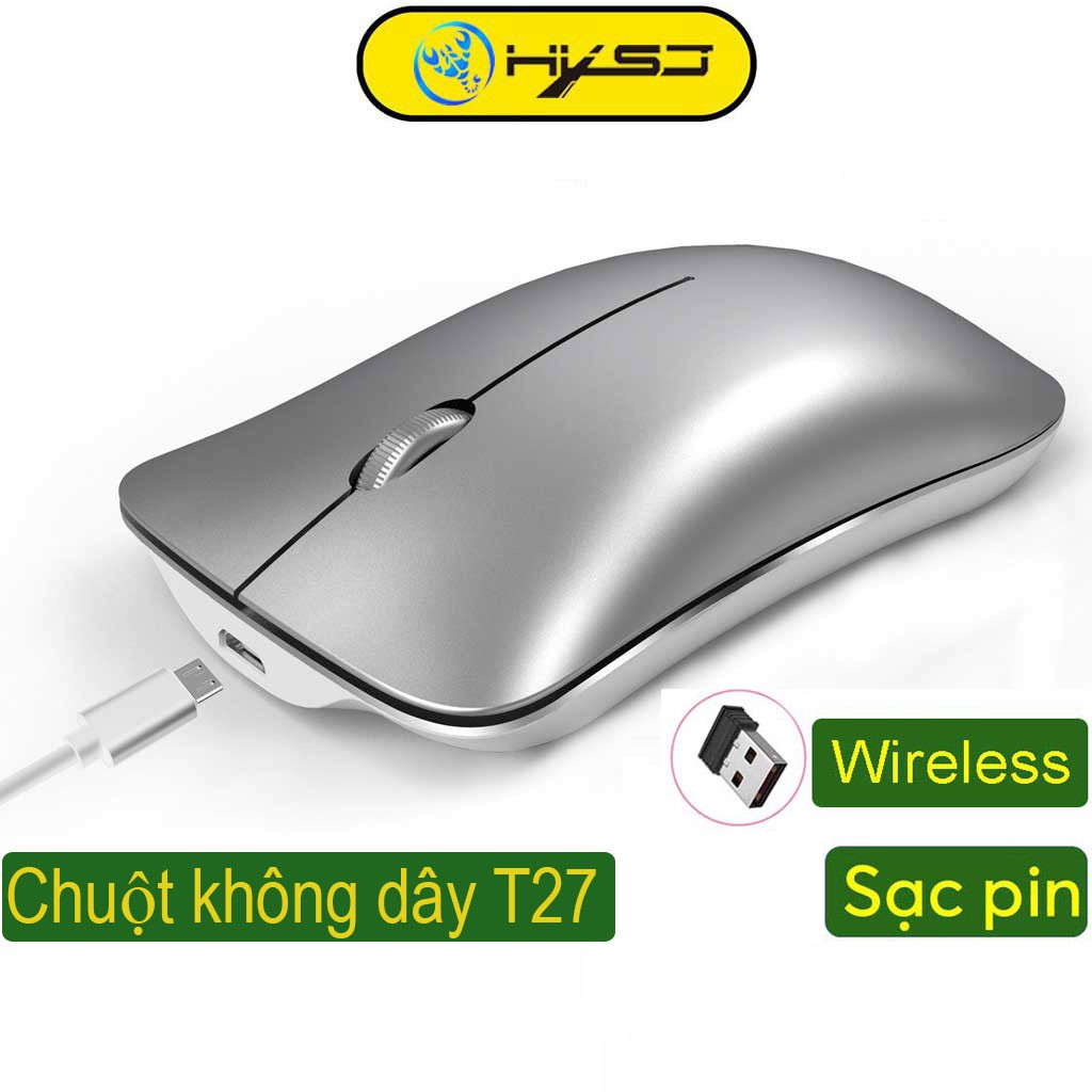 Chuột không dây HXSJ T27 wireless USB 2.4GHz siêu mỏng tự sạc không tiếng ồn chuyên dùng cho pc laptop macbook ipad tivi