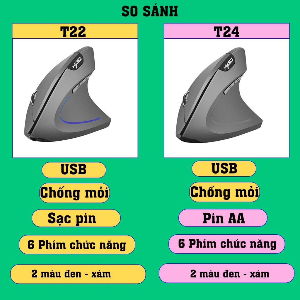 ✿ CÔNG NGHỆ TIẾT KIỆM PIN LỚN Chuột không dây KIỂU ĐỨNG HXSJ T24, T22