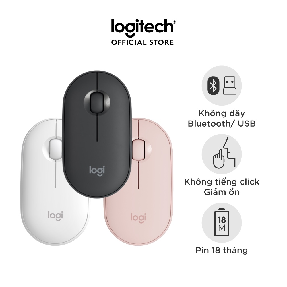 Máy tính & Laptop > Chuột & Bàn Phím > Chuột Máy Tính || [Mã ELMALL10 giảm 10% đơn 500K] Chuột không dây Logitech Pebble M350 - Bluetooth/ USB, nhỏ gọn, giảm ồn, MacOS / PCCòn hàng