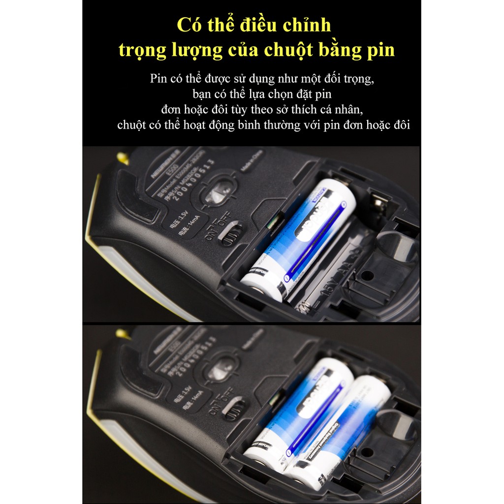 Chuột không dây Newmen E500,kết nối 2.4Ghz,1600DPI,công thái học đối xứng,tuỳ chỉnh trọng lượng -Hàng Chính Hãng,BH 24m