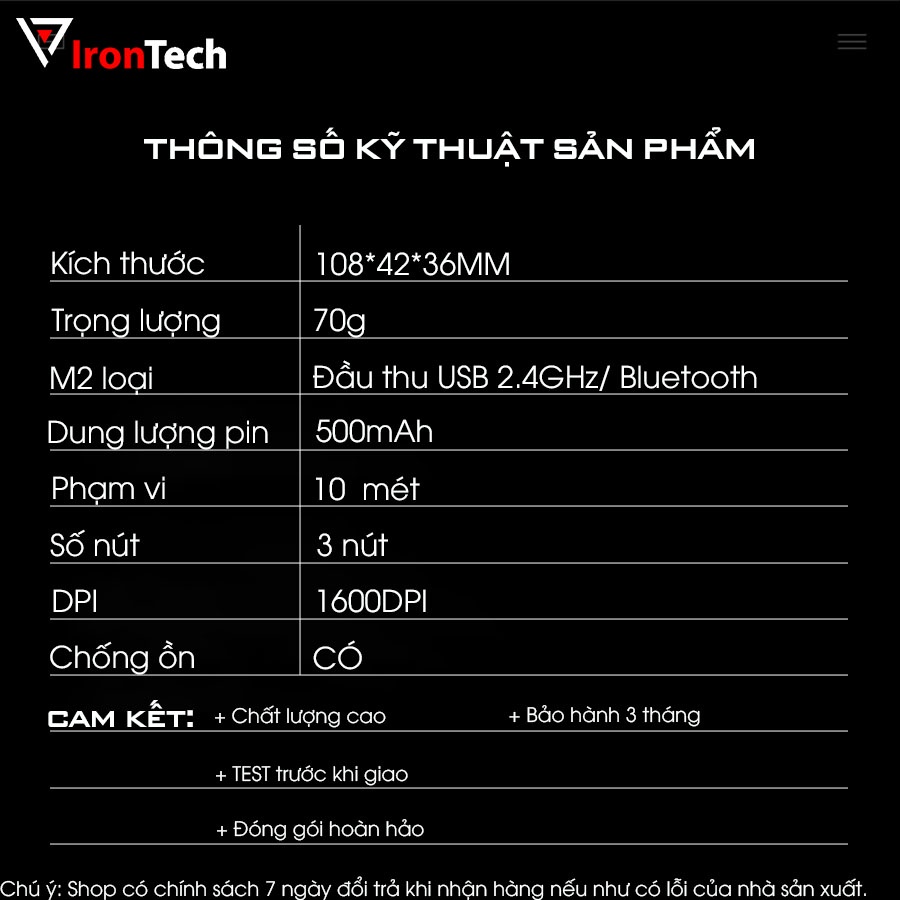 Máy tính & Laptop > Chuột & Bàn Phím > Chuột Máy Tính || Chuột không dây wireless 2.4G và bluetooth IronTech Cops M2 chuột máy tính chống ồn silent 1600dpi cho laptop pcCòn hàng