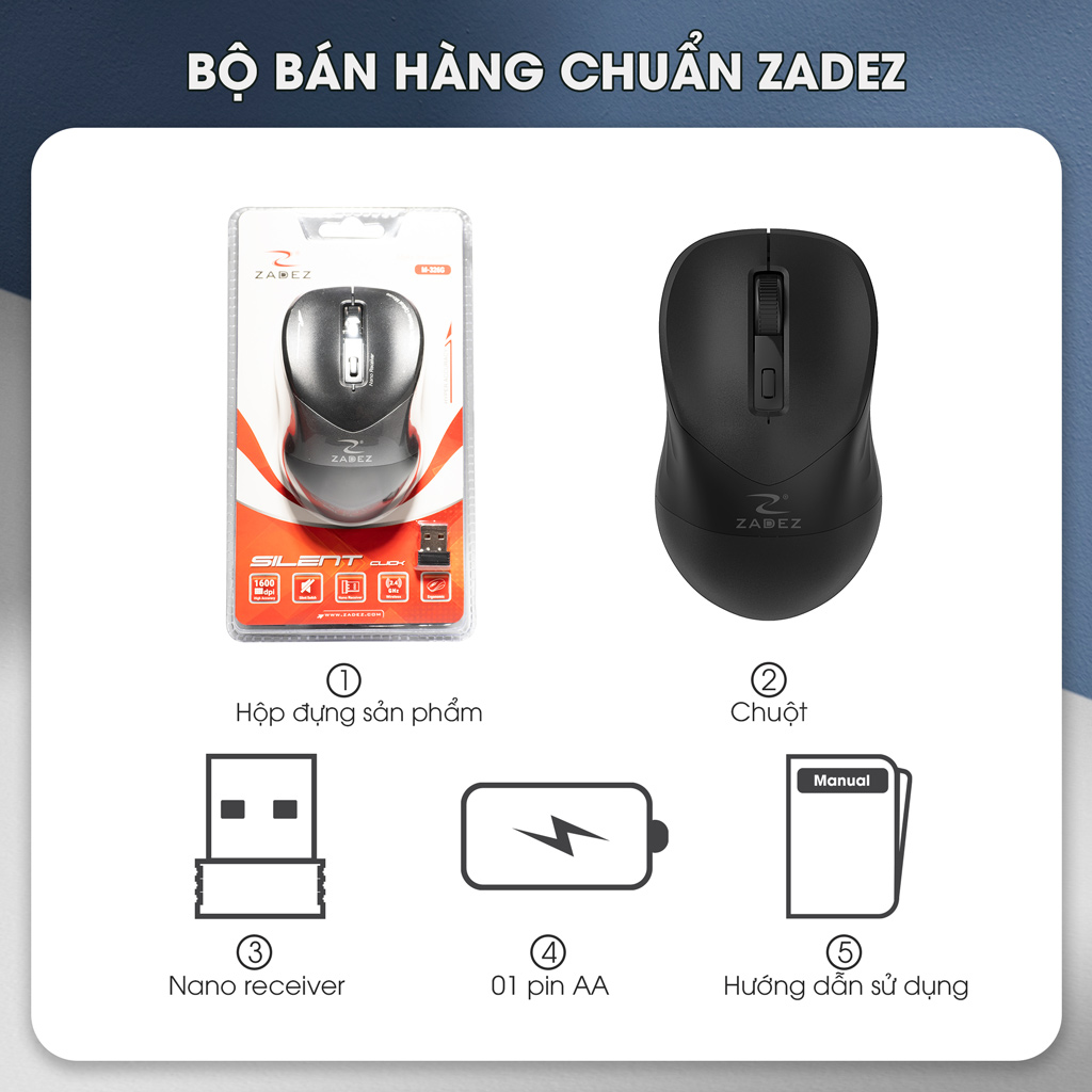 - Chuột không dây, kết nối Wireless 2.4G (Nano Receiver)