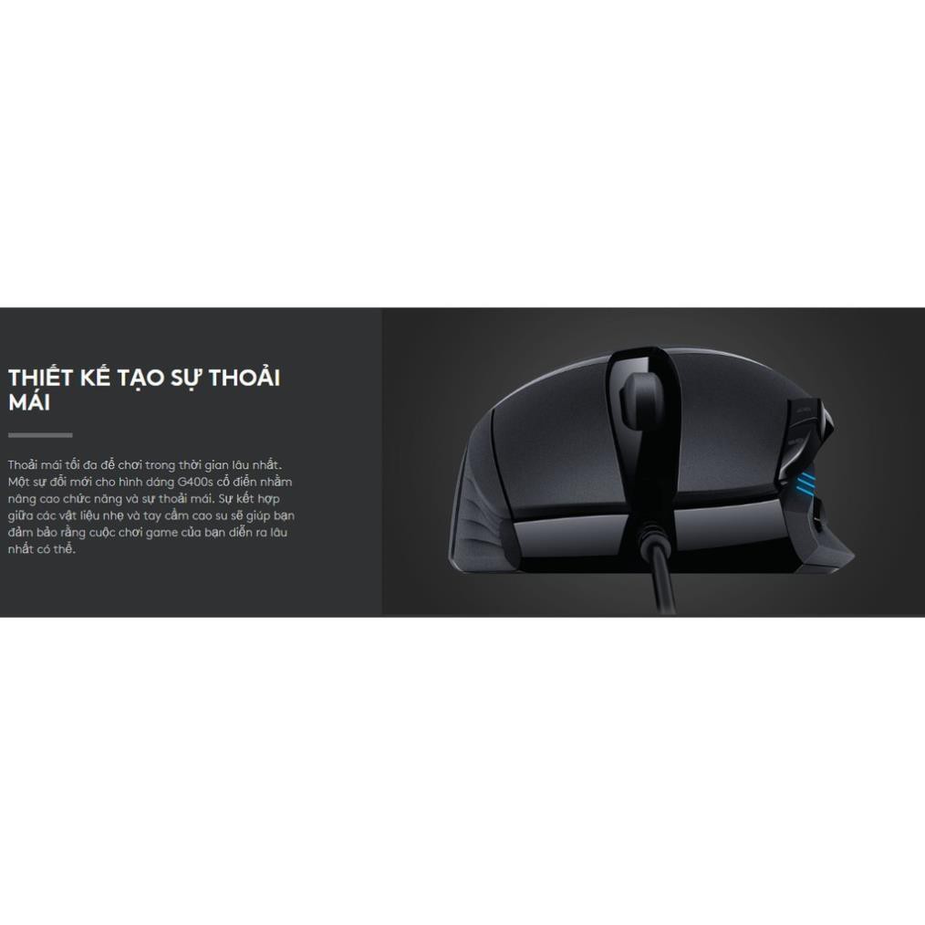 Một sự đổi mới cho hình dáng G400s cổ điển nhằm nâng cao chức năng và sự thoải mái. Sự kết hợp giữa các vật liệu nhẹ và tay cầm cao su sẽ giúp bạn đảm bảo rằng cuộc chơi game của bạn diễn ra lâu nhất có thể.