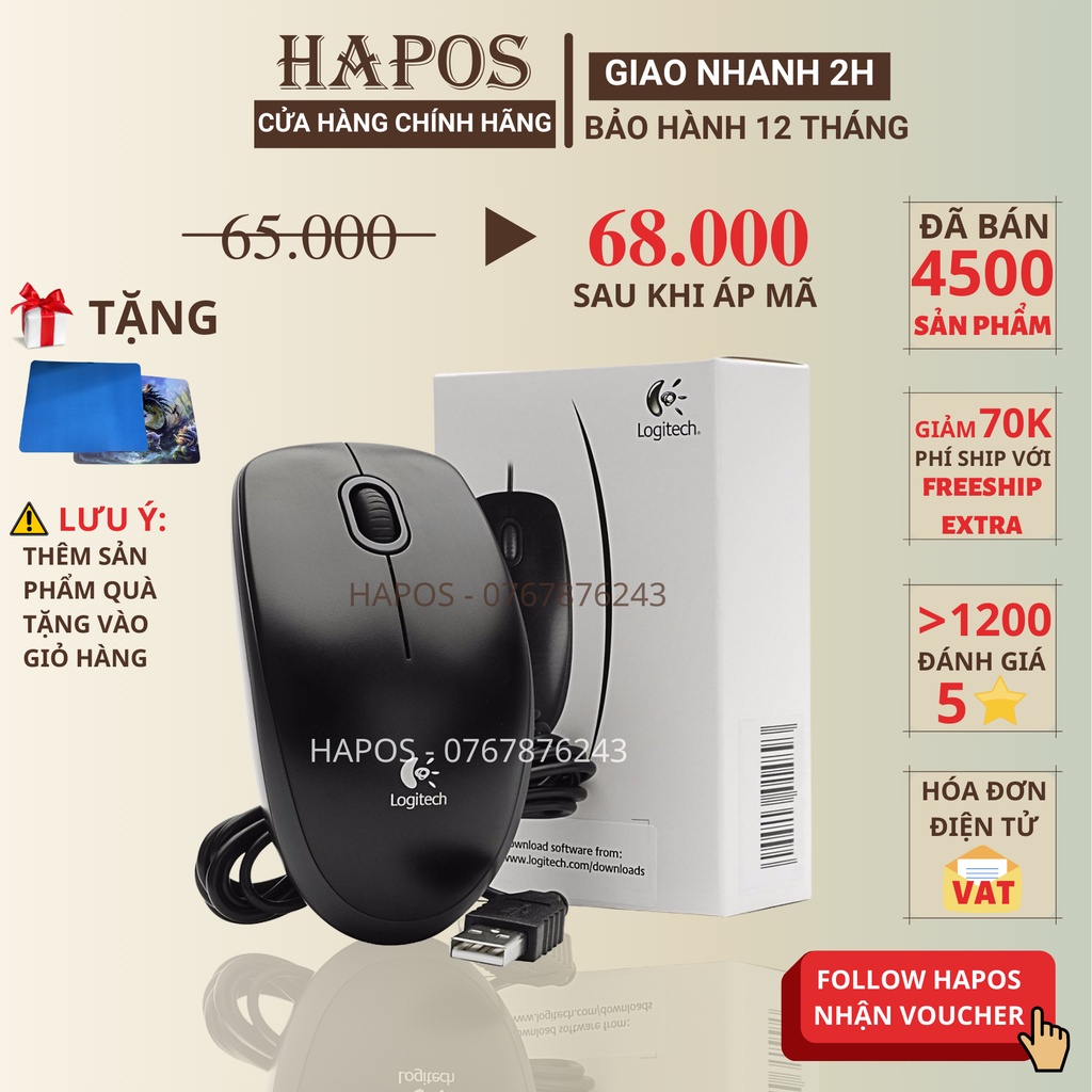 Máy tính & Laptop > Chuột & Bàn Phím > Chuột Máy Tính || Chuột máy tính logitech có dây B100 dùng cho PC, laptop tặng kèm miếng pad lót chuột - HAPOS Bảo hành 3 nămCòn hàng