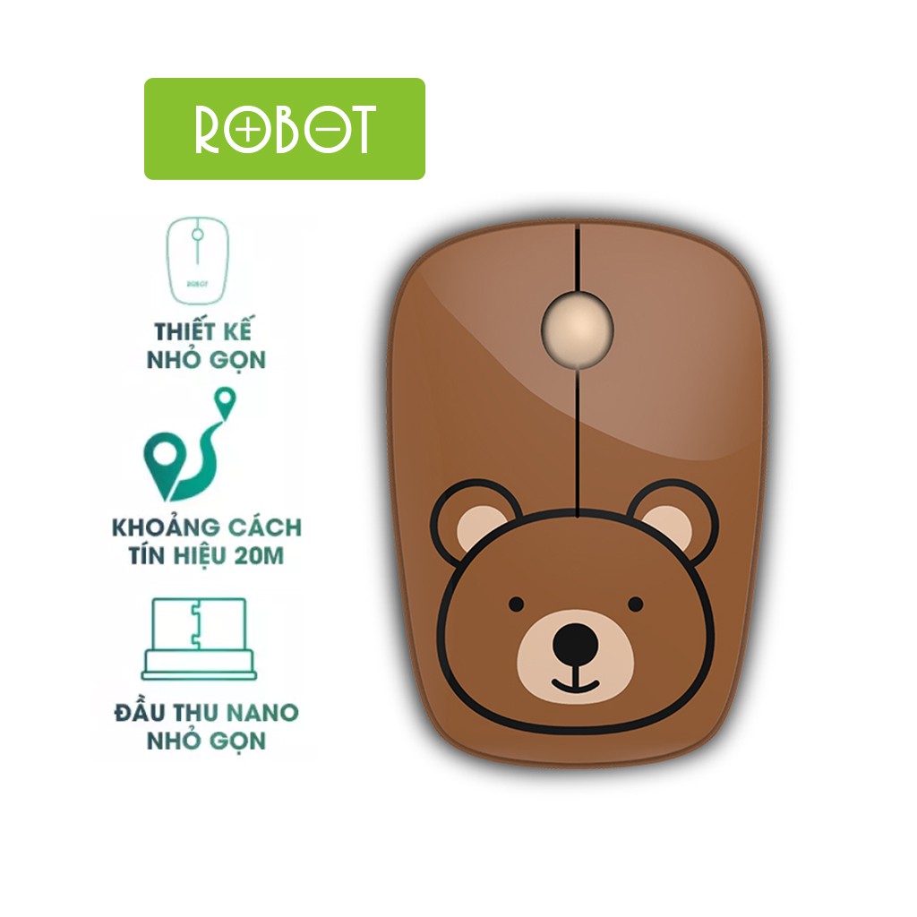 Máy tính & Laptop > Chuột & Bàn Phím > Chuột Máy Tính || Chuột Quang Không Dây 2.4GHz ROBOT M220 Họa Tiết Hoạt Hình Dễ Thương - Cảm Biến Quang Học Khoảng Cách Tín Hiệu 20mCòn hàng