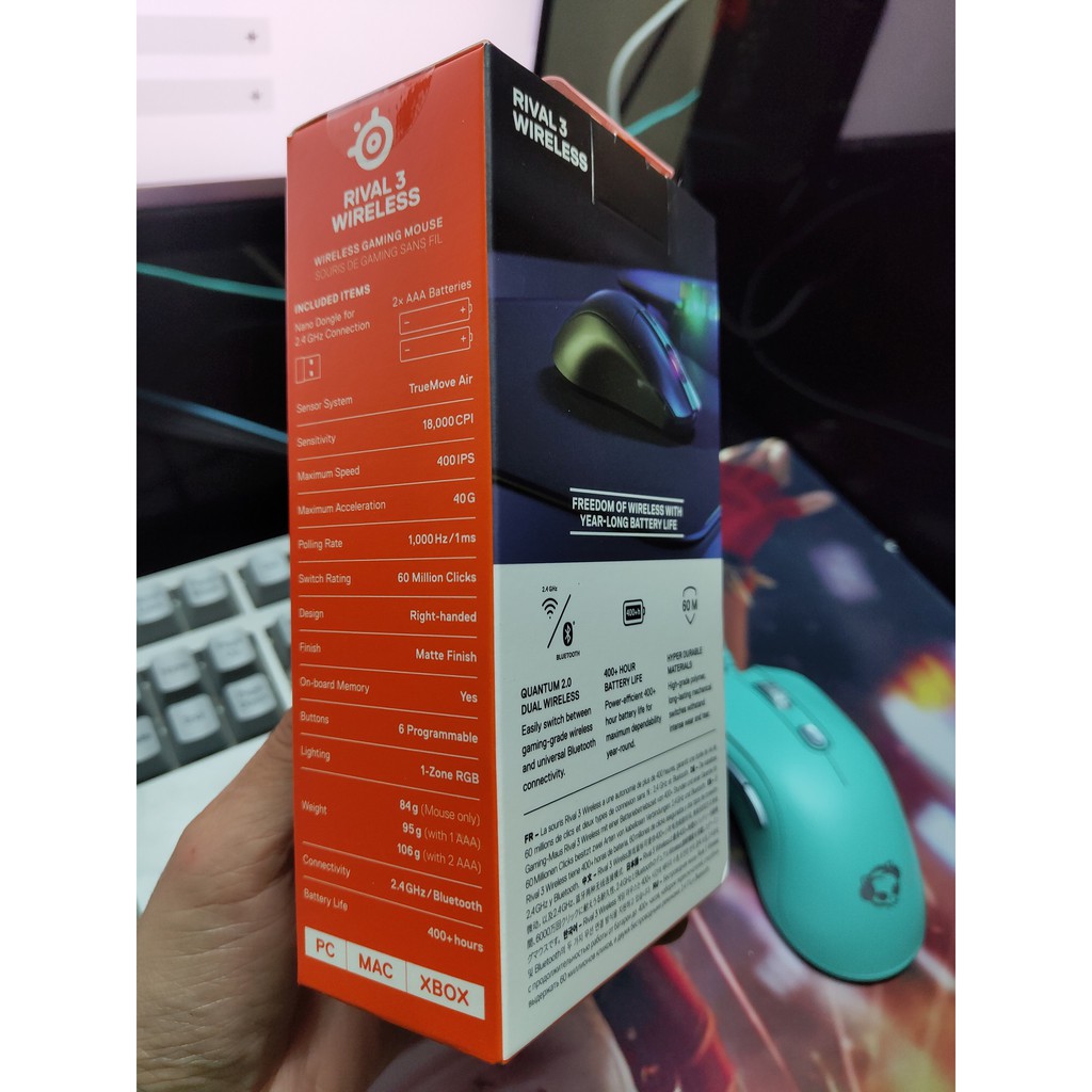 * Thông tin sản phẩm:- Tên sản phẩm: Chuột Steelseries RIVAL 3 Dual Wireless / Bluetooth Gaming mouse 18000 CPI
