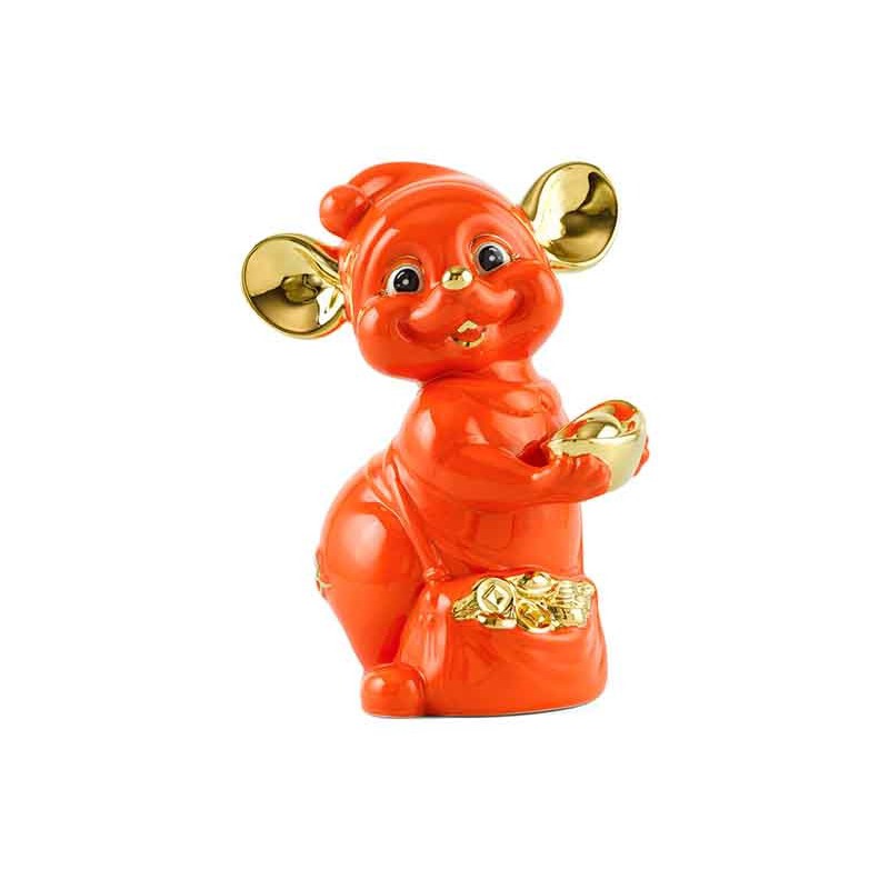 Những chú chuột sứ Minh Long có khuôn mặt sang ngời, mang túi “túi vàng” nặng trĩu gửi gắm lời chúc tài lộc, hanh thông cho năm mới.
