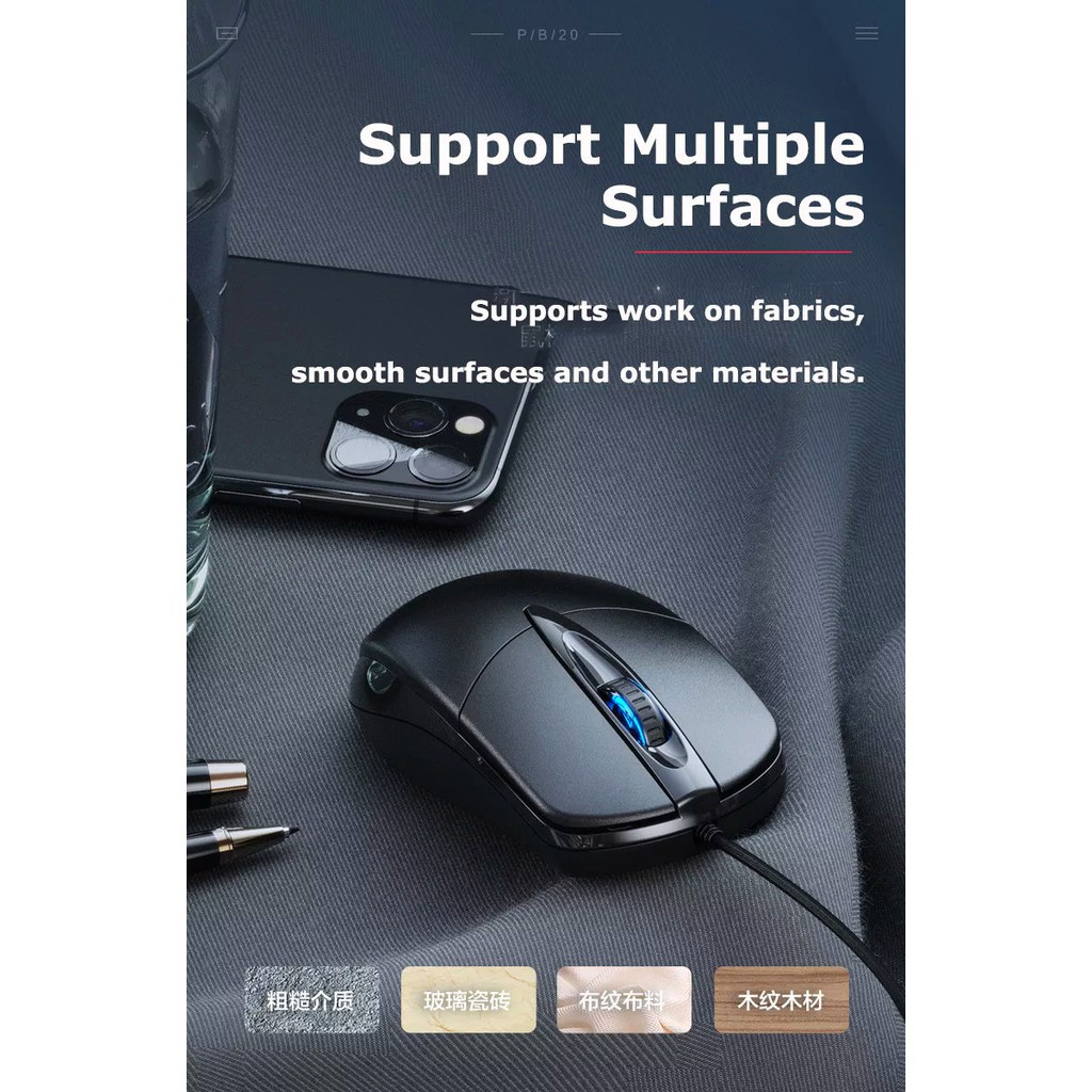Cảm biến quang học được sử dụng cho PB20 tương thích với nhiều bề mặt khác nhau, vì vậy bạn sẽ có trải nghiệm mượt mà ở bất cứ đâu.