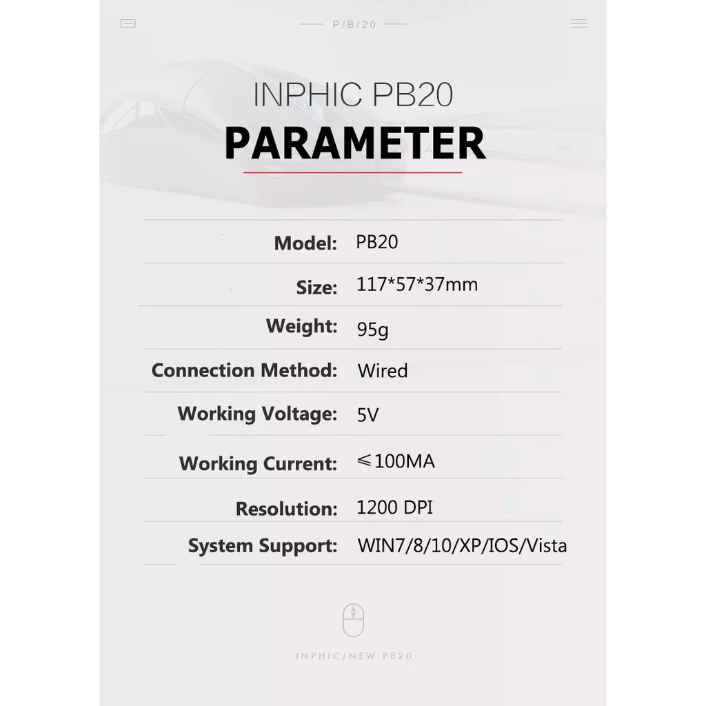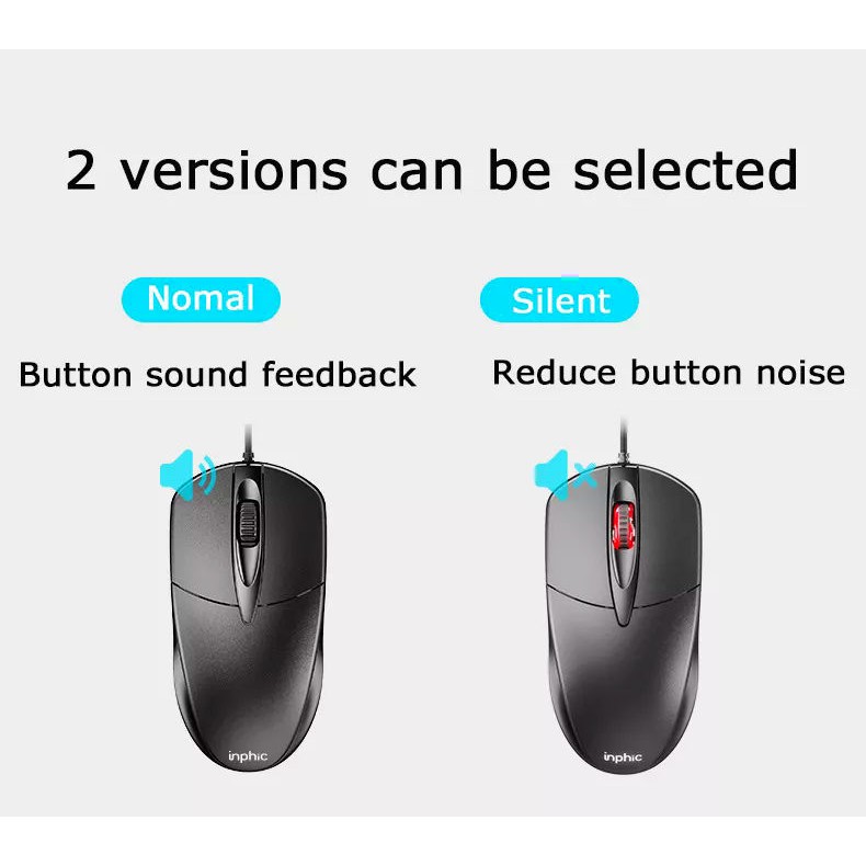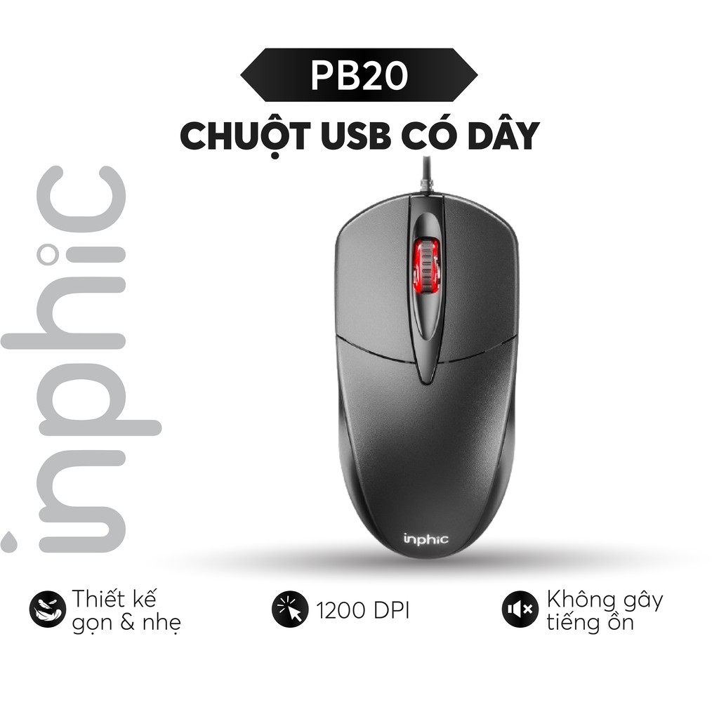 Chuột USB Có Dây INPHIC PB20P/ PB20 Thiết Kế Tiện Dụng Nút Bấm Cực Êm Phù Hợp Cho Văn Phòng và Gia Đình - Chính Hãng