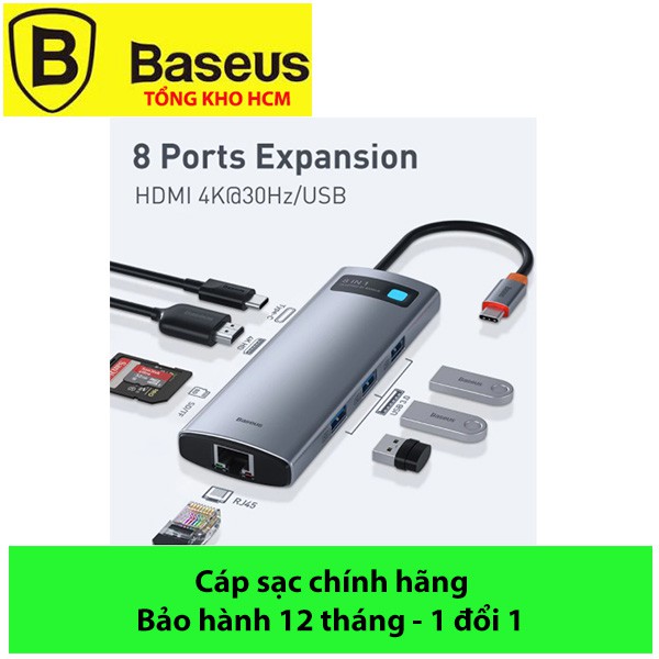 Giới thiệu Bộ chuyển Baseus 8in1, Hub Baseus Metal Gleam Series Multi Docking Station (Type C to HDMI/3*USB 3.0/LAN/PD 100W/TF/SD)