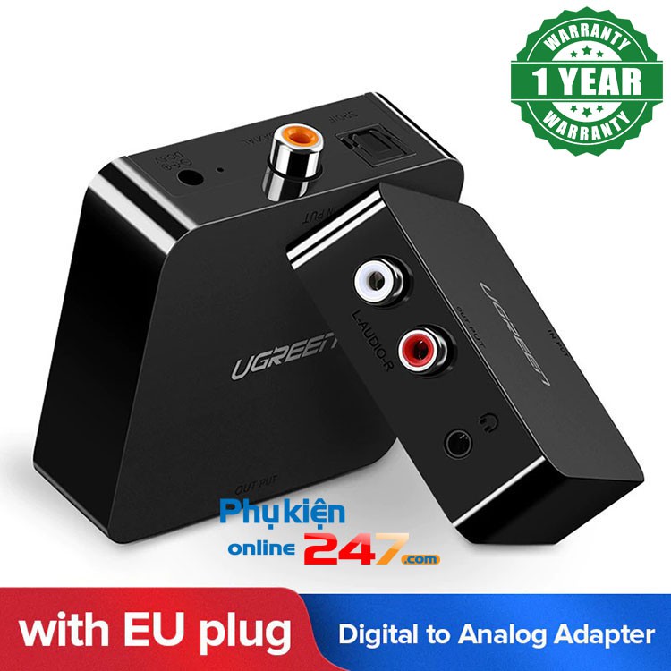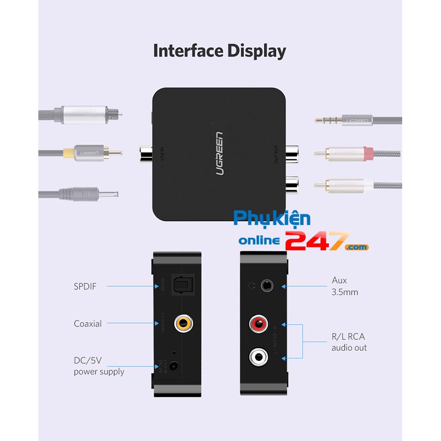 💢 Sản phẩm được làm theo dạng hình hộp vuông với các góc được vát cong nhẹ cho một cảm giác mềm mại khi cầm trên tay. Mặt trên được thiết kế bóng loáng rất sang trọng với logo Ugreen được in ở chính giữa tạo điểm nhấn. Cạnh trên là 2 cổng input Optical + Coaxial và nút nguồn. Cạnh dưới là 2 cổng output L/R RCA và 3.5mm.