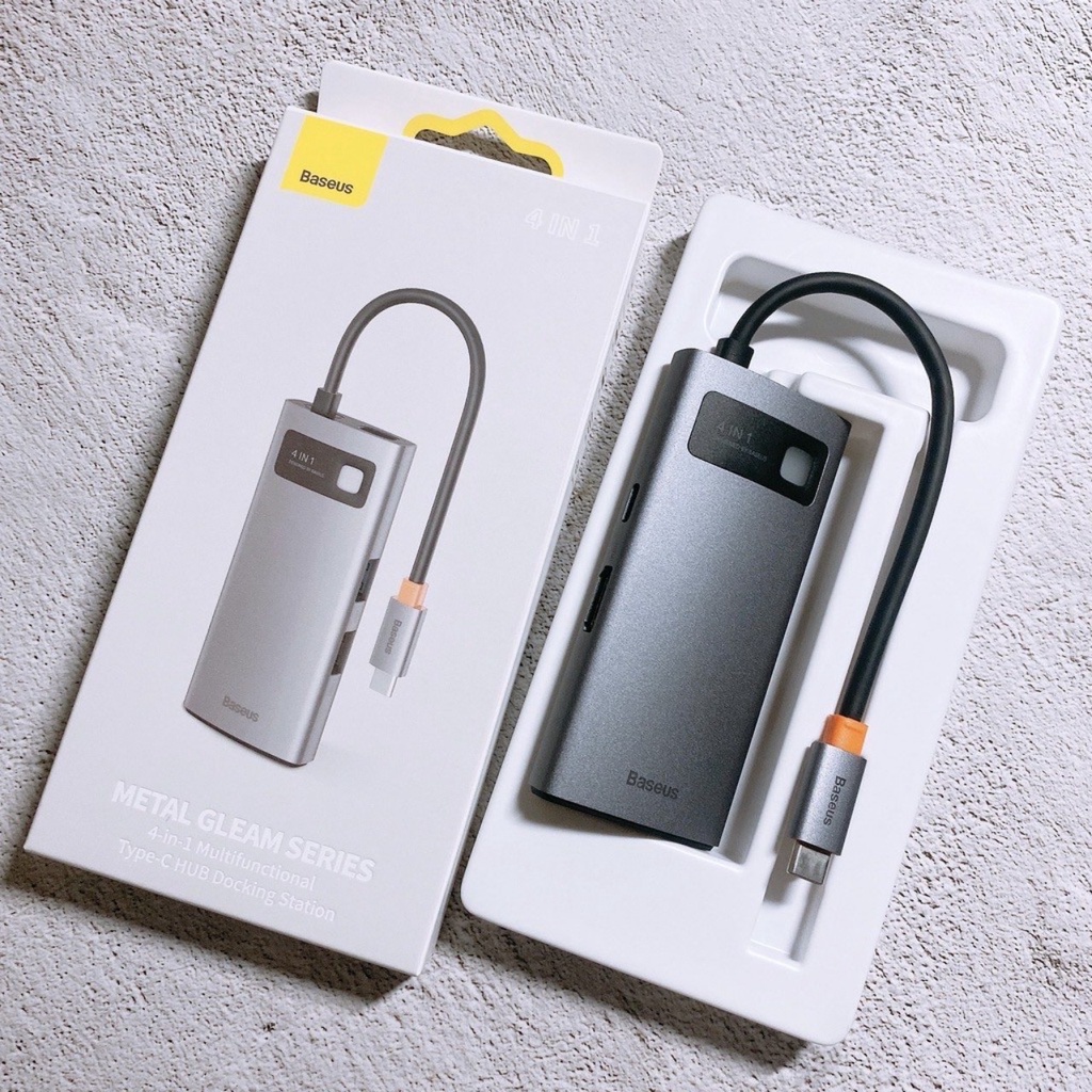 Cổng chuyển đổi Baseus Metal Gleam Hub Type C 4 in 1 HDMI 4K HD/USB 3.0/USB 2.0/PowerDelivery cho điện thoại, Macbook Window
