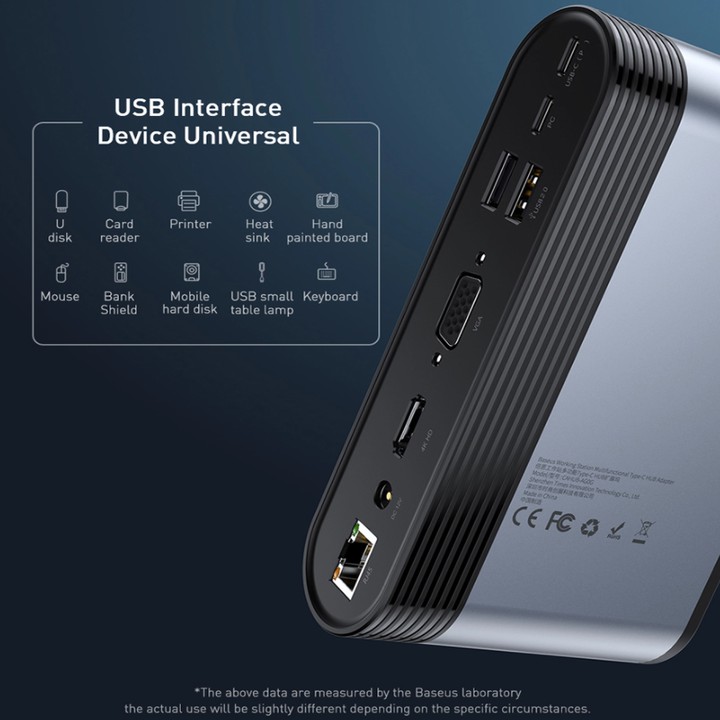 - Với Hub chuyển đa năng Baseus Working Station 16 in 1 và 16 in 1 Multifunctional bạn có thể dễ dàng xuất hình ảnh, âm thanh độ nét cao qua cổng HDMI/ VGA/ AUX 3.5mm, đồng bộ và chia sẽ dữ liệu/ hình ảnh từ thẻ nhớ, các thiết bị lưu trữ. Ngoài ra bộ HUB còn được trang bị cổng mạng LAN có dây (RJ-45) cho phép bạn có thể kết nối mạng ở những nơi không có Wifi . Bạn sẽ không còn phải gặp các phiền phức và bất tiện do thiếu cổng kết nối.