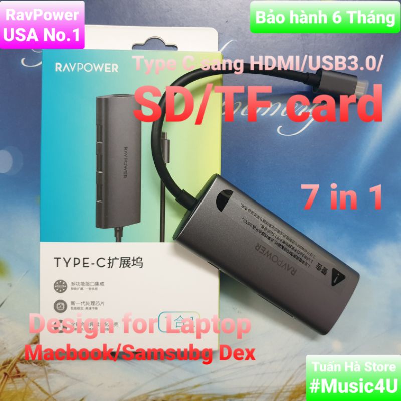 Giới thiệu Bộ cáp chuyển đổi Hub 7 in 1 USB Type C to sang HDMI 4K VGA USB3.0 PD Vention Ravpower Aukey cho Samsung dex Macbook