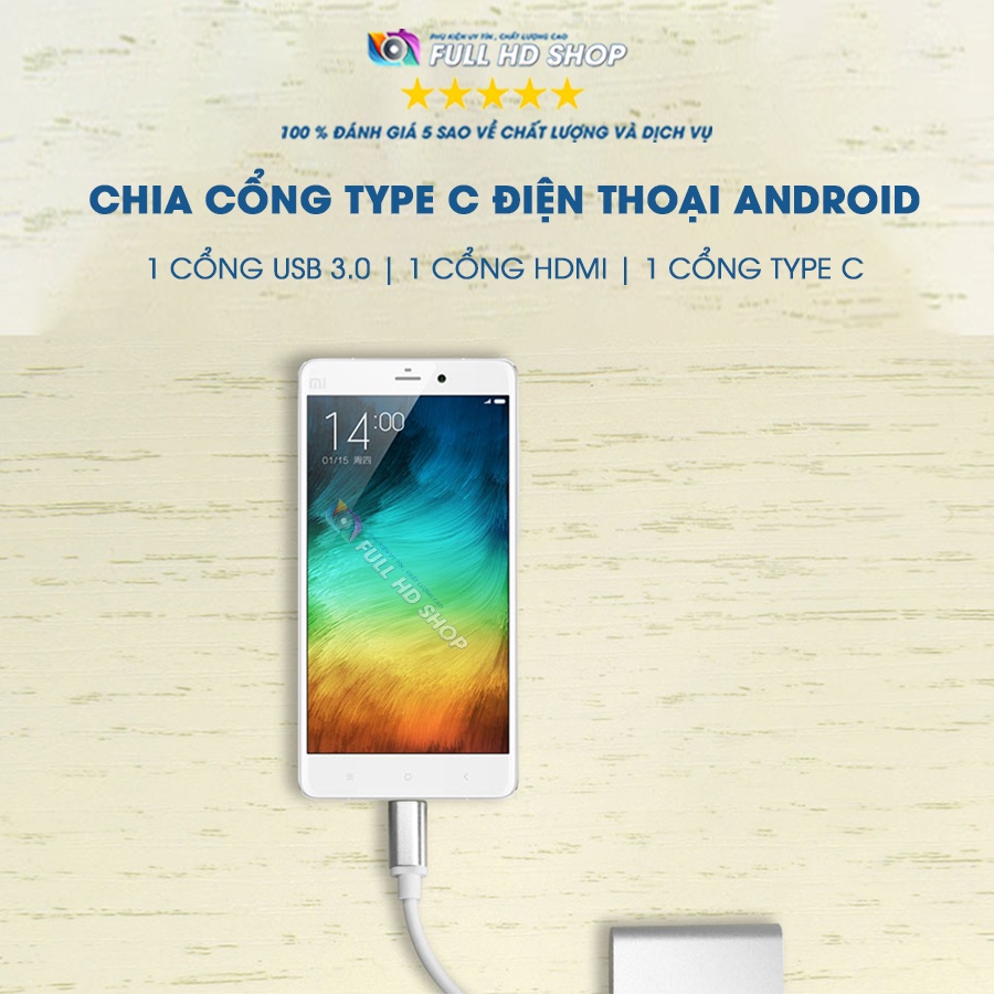 Type C To HDMI Cáp Type C To HDMI Và USB Cho Các Dòng Macbook/Laptop/Điện thoại có cấu hình MHL Full HD Shop Mã HD05