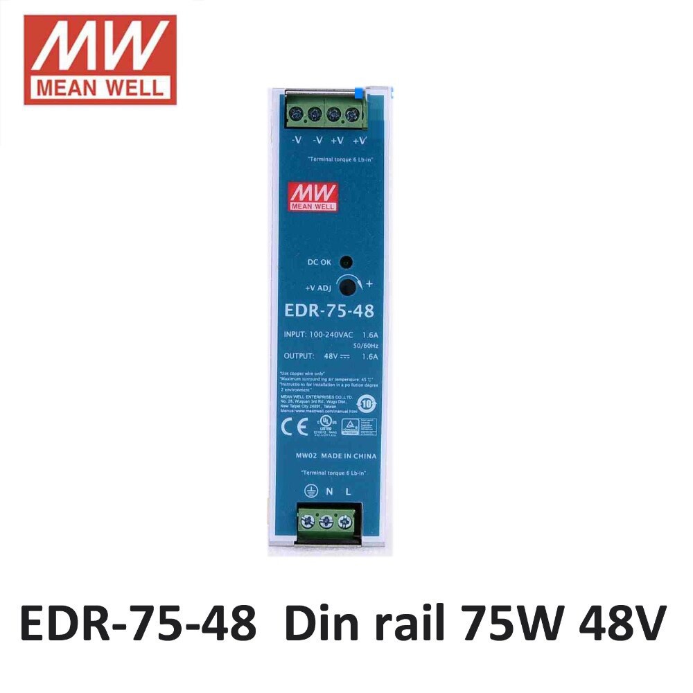 Bộ Chuyển Đổi Nguồn Điện Công Nghiệp Gắn Thanh DIN AC220V->DC48V 75W 1.6A EDR-75-48 (MEAN WELL)