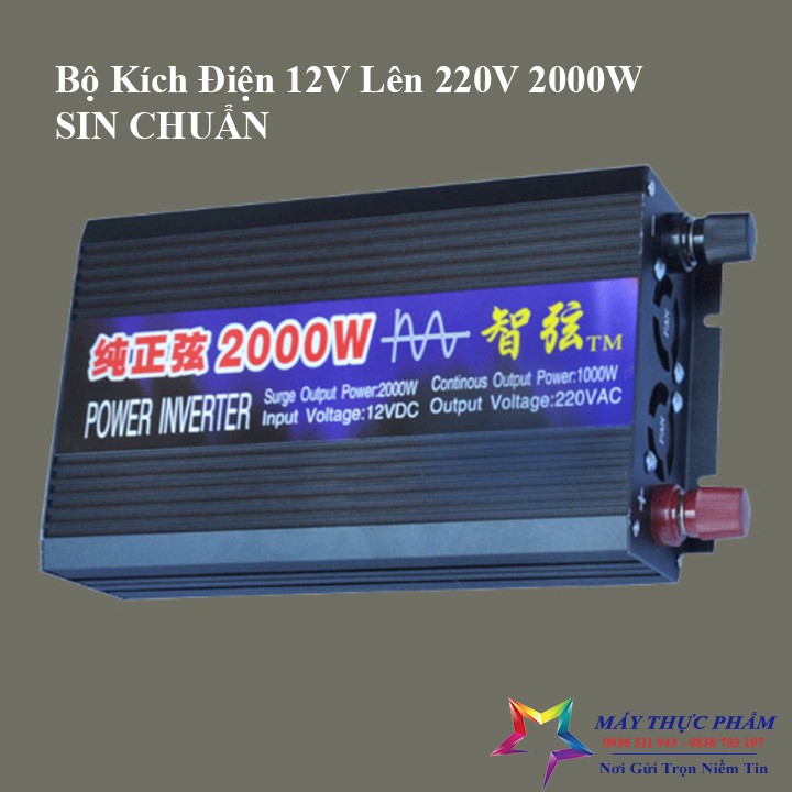 BỘ KÍCH ĐIỆN INVERTER 12V - 220V - 2000W SIN CHUẨN- Máy Thực Phẩm xin giới thiệu sản phẩm Bộ kích điện sin chuẩn 12V - 220V - 2000W BB chức năng dùng đổi nguồn từ bình ắc quy 12V sang 220V sử dụng cho các thiết bị điện trong gia đình.