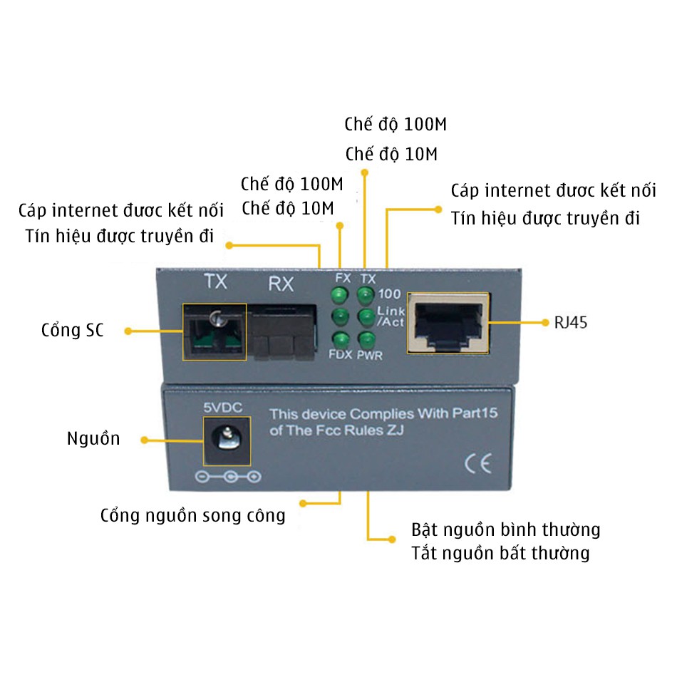 - Cung cấp một kết nối RJ45 và SC sợi giao diện