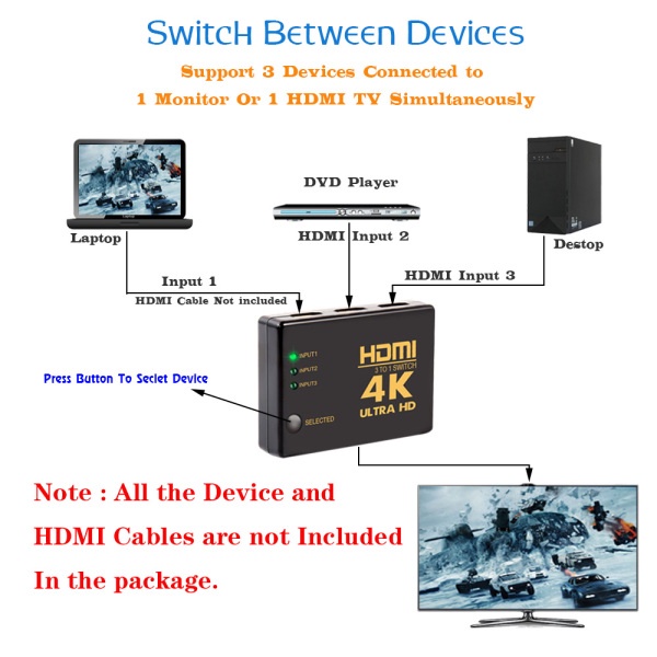 Giới thiệu Bộ chuyển đổi Switch HDMI 4k 3x1 3 ngõ vào 1 ngõ ra cổng HDMI xuất LCD tivi