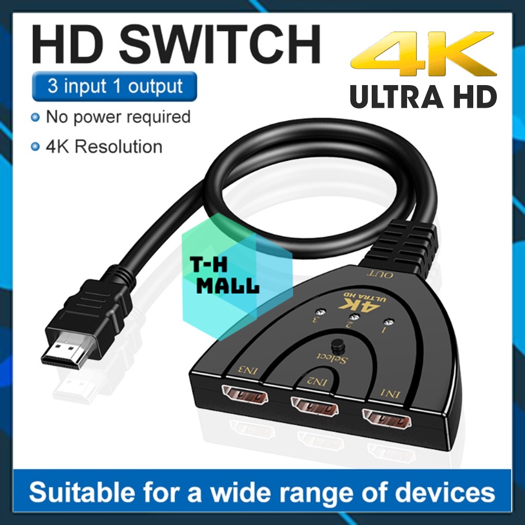 - Nút chuyển cho phép bạn kết nối ba thiết bị HDMI với một màn hình HDMI. Các đầu nối mạ vàng. Không giảm chất lượng