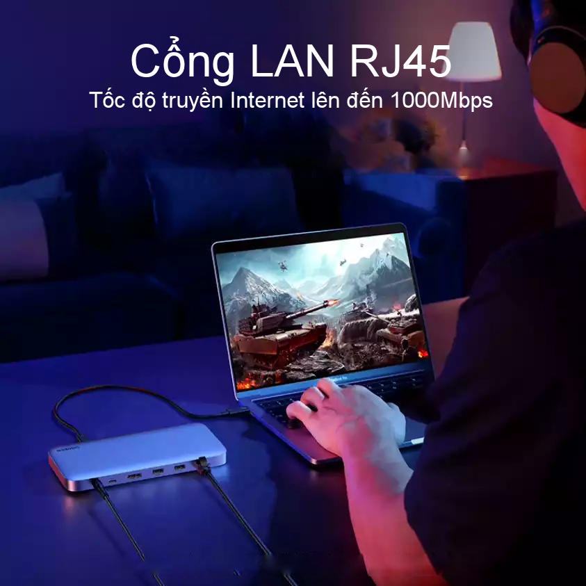 - Đầu ra : 1 * USB 3.0A Female, 2 * USB 3.1A Female, 1 * USB 3.1C Female, 1 * DP Female, 1 * RJ45 (Gigabit), 1 * SD slot, 1 * TF slot, 1 * 3.5mm cổng âm thanh, 1 * DC 5.5mm