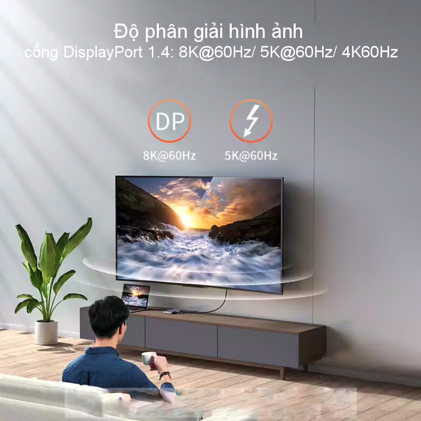 USB C sang Displayport 1.4: Với tính năng chuyển đổi kết nối chia sẽ hình ảnh, âm thanh từ cổng USB-C sang cổng Displayport trên màn hình máy tính, HDTV, máy chiếu HD... với chất lượng hình ảnh, âm thanh tuyệt vời ở độ phân giải hình ảnh tối đa lên đến 8K@60Hz.