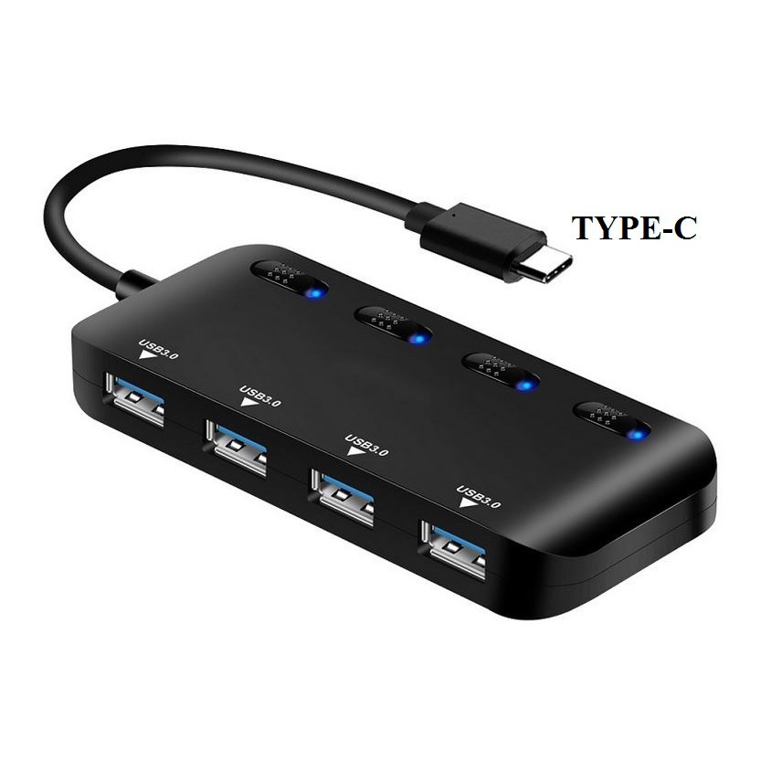Bộ chuyển đổi từ Typec sang 4 USB 3.0 có công tắc và đèn led Ultraslim kết nối USB chuột bàn phím tay game ổ cứng...
