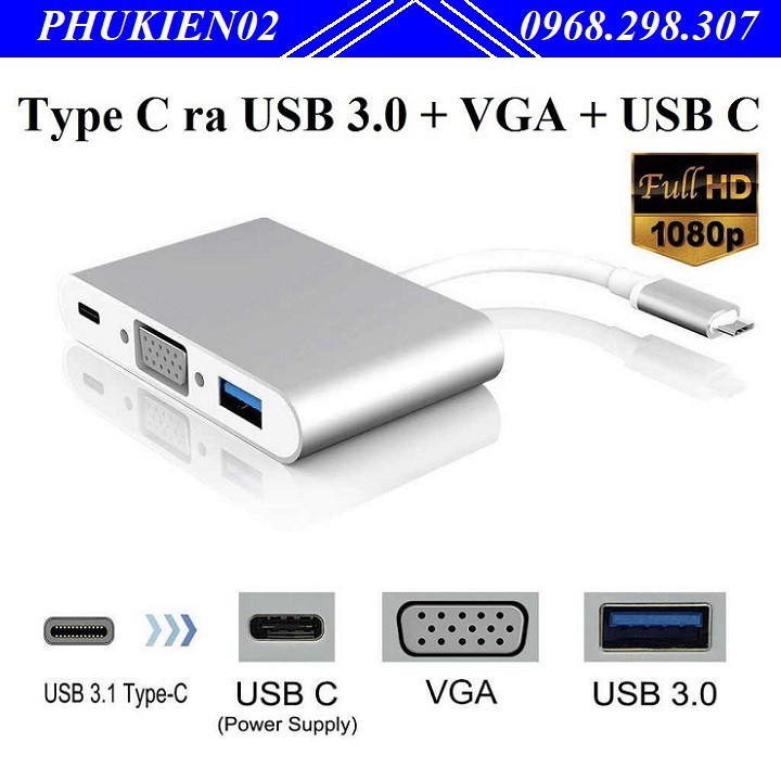 Bộ chuyển đổi Type C ra VGA + USB 3.0 + Type C