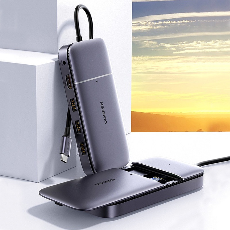 Giới thiệu Bộ chuyển đổi USB Type-C 6 in 1 Ugreen 70449 Chính Hãng HDMI 4K@60Hz+USB 3.1 Gen 2 + PD + DC 5V/ 2A + M.2 SATA B-Key