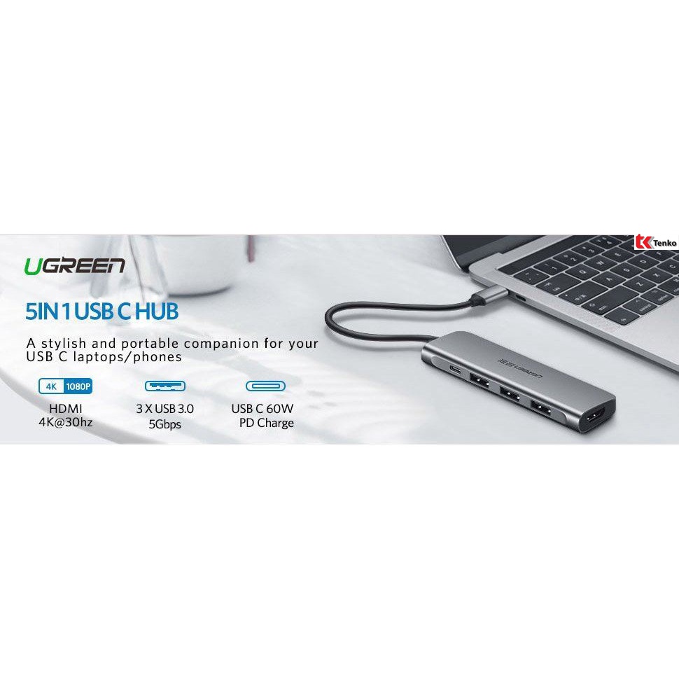 Bộ chuyển đổi USB type-C sang HDMI và Hub USB 3.0 (5 trong 1)hỗ trợ sạc cổng USB-C chính hãng Ugreen 50209