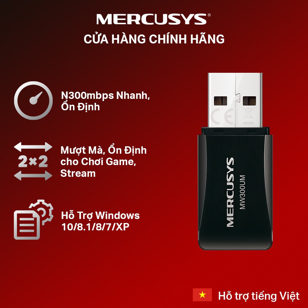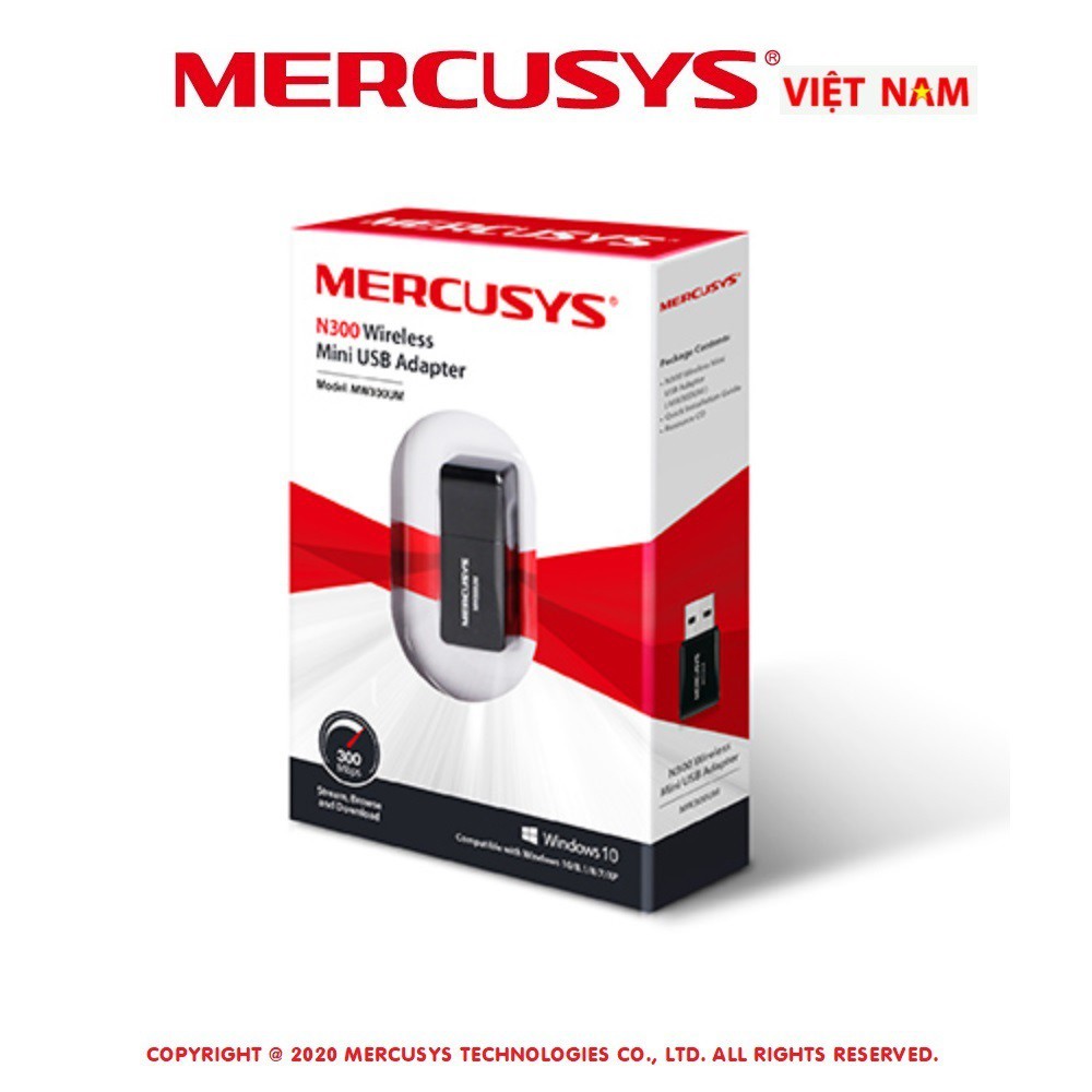 Bộ chuyển đổi USB wifi MERCUSYS MW300UM chuẩn N tốc độ 300Mbps. Chính hãng, BH 24 tháng