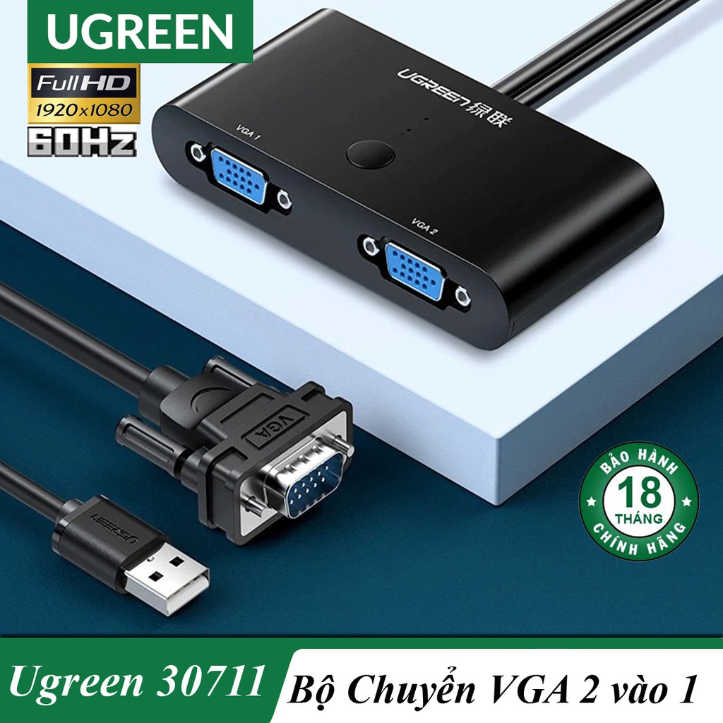Giới Thiệu Sản Phẩm Bộ gộp 2 máy tính chung 1 màn hình Ugreen 30711- Bộ chuyển mạch VGA cao cấp Ugreen 30711 là thiết bị cao cấp cung cấp khả năng kết nối một máy tính với hai màn hình và ngược lại, cho chất lượng hình ảnh tối ưu ở mức Full HD 1920*1080p/60Hz.