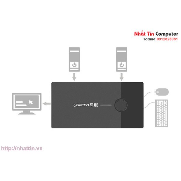 Bộ chuyển tín hiệu 2 CPU dùng 1 Màn hình KVM Switch USB Chính hãng Ugreen 30357 cao cấp
