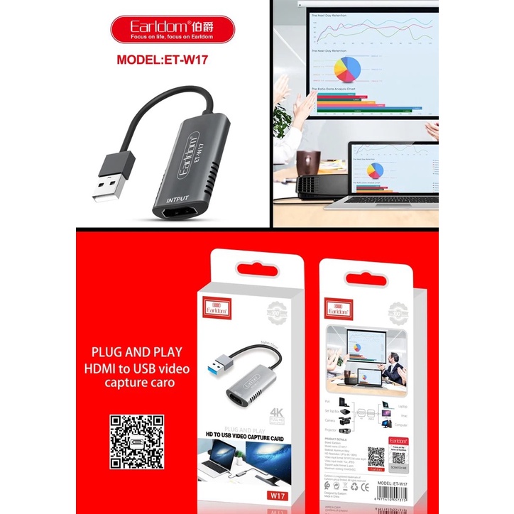 Gaming & Console > Phụ kiện console || Bộ Chuyển USB Ra HDMI Earldom W17- USB/HDMI ( Hỗ trợ livestream ghi hình từ điện thoại, camera, PS4, XBOX vào máy tính)Còn hàng