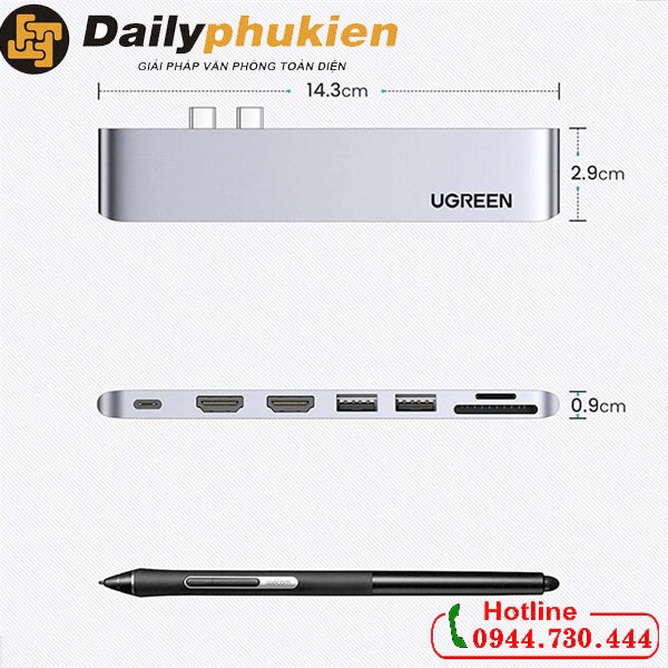 Giới thiệu Bộ chuyển USB Type C to 2 HDMI, USB 3.0, đọc thẻ SD/TF hỗ trợ sạc USB C Ugreen 80548 dailyphukien