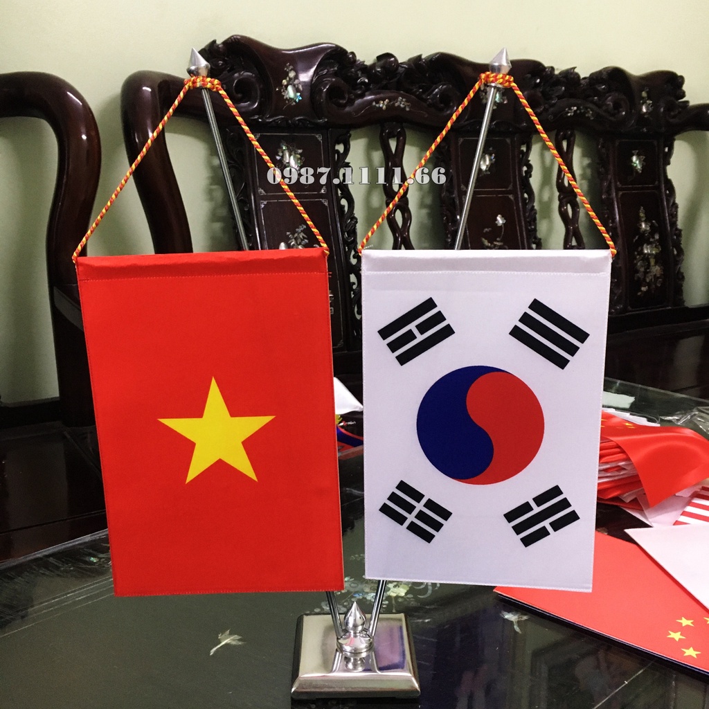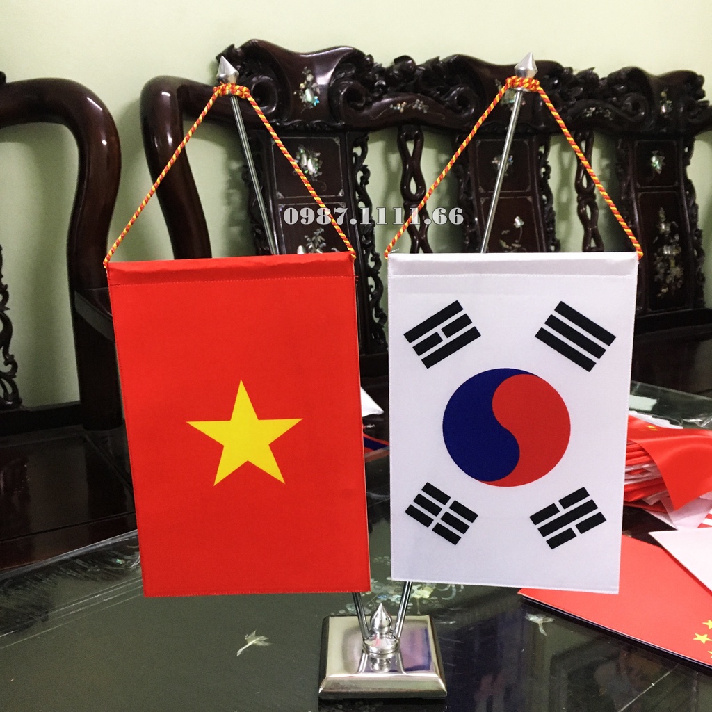 Cờ Để Bàn Đế Inox Kéo lên Xuông Được Dùng trong phòng làm việc, cờ phòng họp cờ Việt Nam - Hàn Quốc