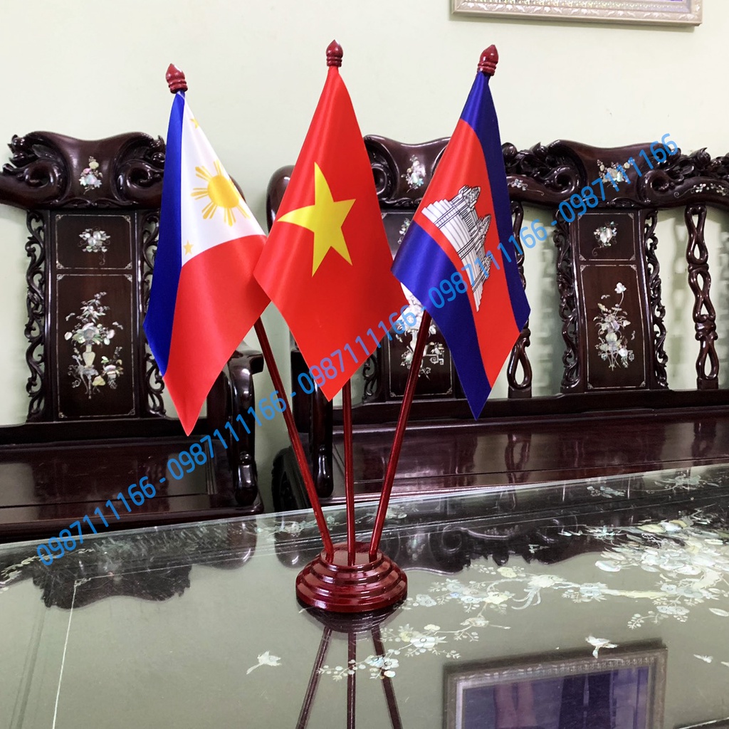 Cờ Để Bàn Gỗ 3 nước Philipine - Việt Nam - Camphuchia