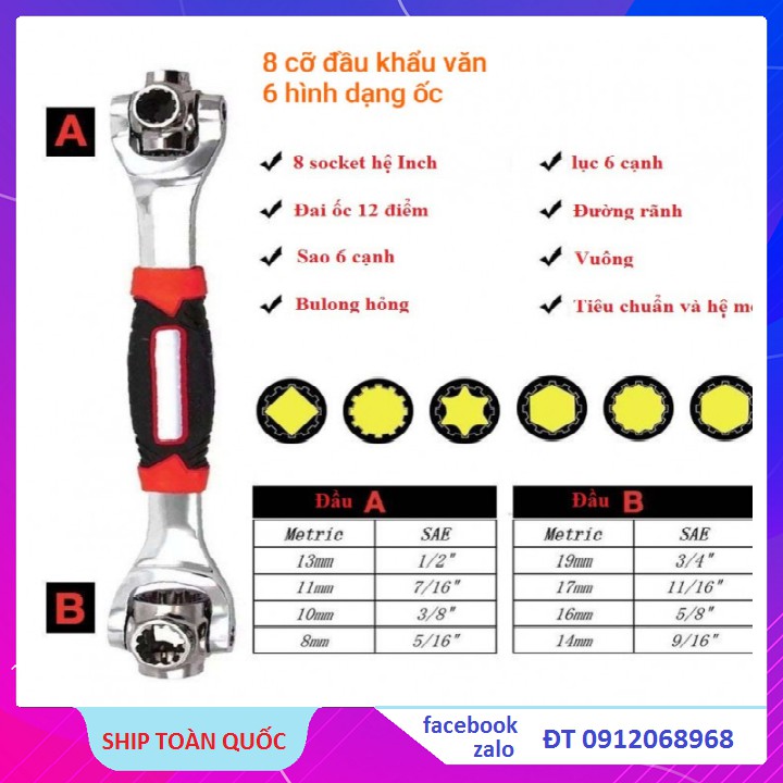 Thông số kĩ thuật của cờ lê 8 đầu đa năng