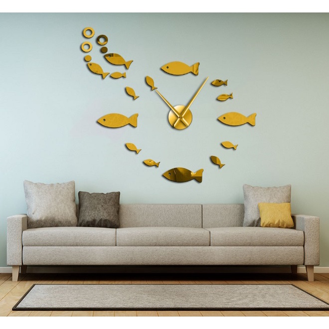 Giới thiệu (CỠ LỚN, LOẠI 1) Đồng hồ dán tường trang trí decor, mô hình bầy cá (mẫu 23)