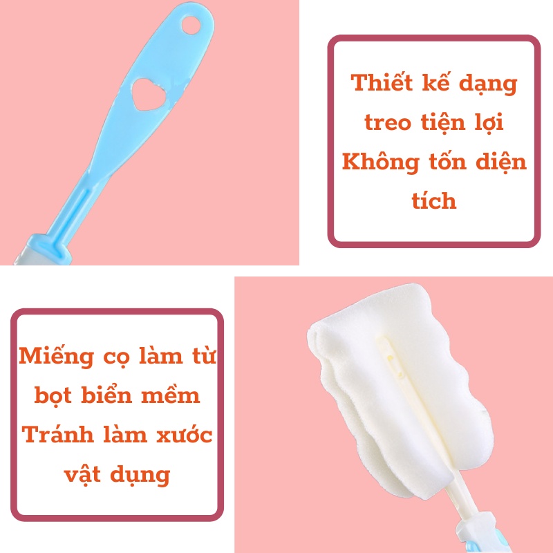 Bộ cọ rửa bình nước mút bọt biển, dụng cụ vệ sinh cốc ly siêu sạch tiện lợi, khớp nối thông minh tránh gãy mã UBAVN027MÔ TẢ SẢN PHẨM