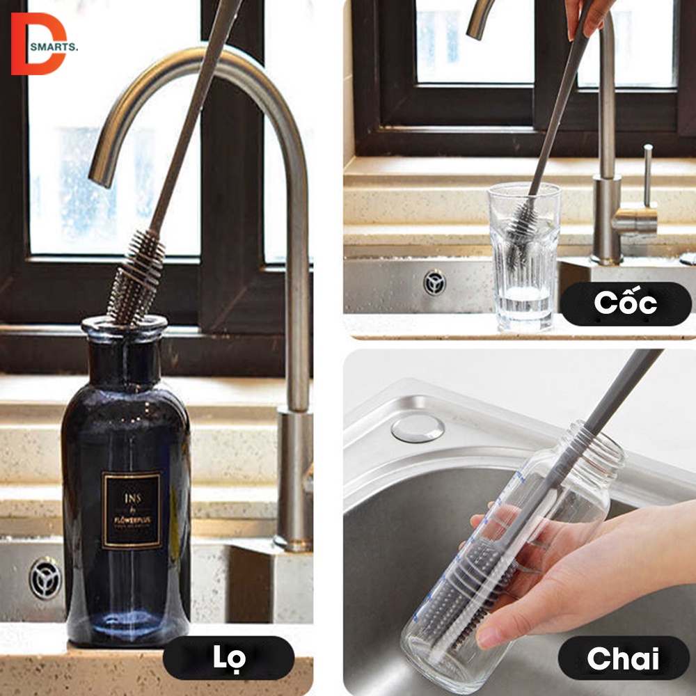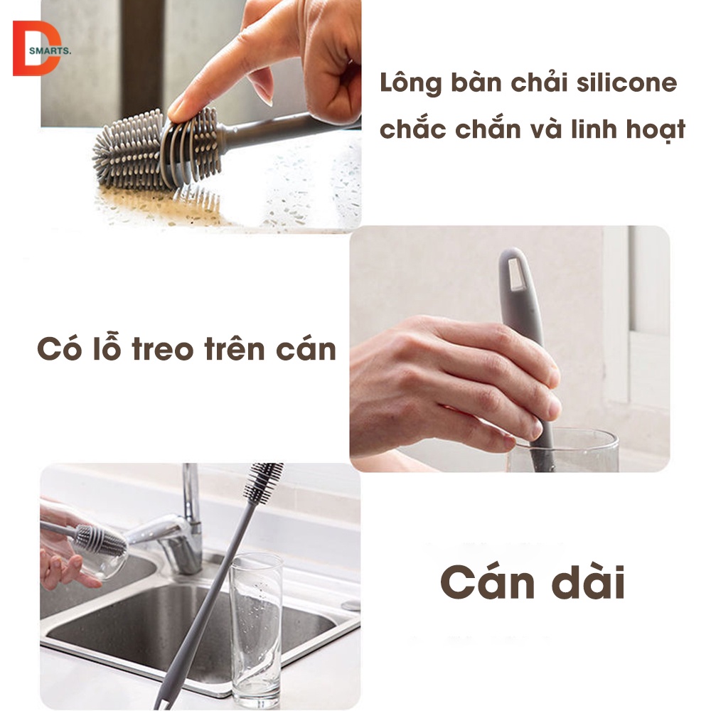 Cọ rửa cốc silicon cán dài, cọ rửa bình sữa đa năng, tiện lợi