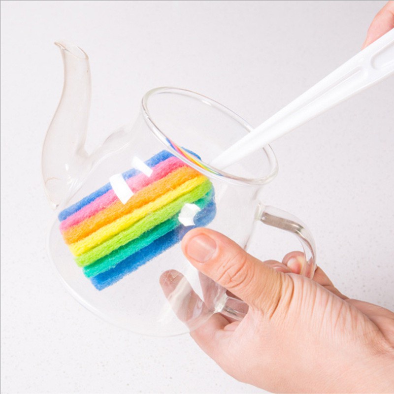 - Cây cọ rửa ly 7 màu thiết kế đẹp mắt, tay cầm nhựa cứng giúp người sử dụng dễ dàng thao tác linh hoạt mà không sợ bị xà phồng làm ảnh hưởng đến da