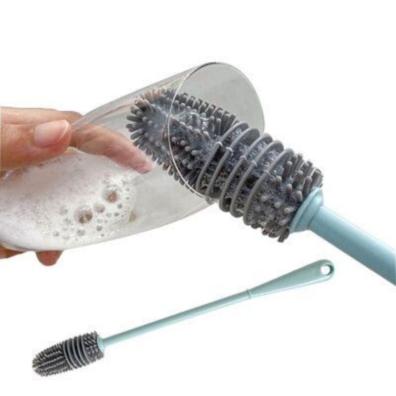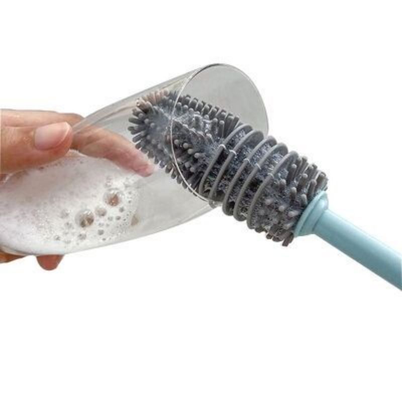 Đầu cán dài cùng với các sợi silicon mềm mại có thể luồn lách mọi góc cạnh của đáy bình, làm sạch một cách nhanh chóng