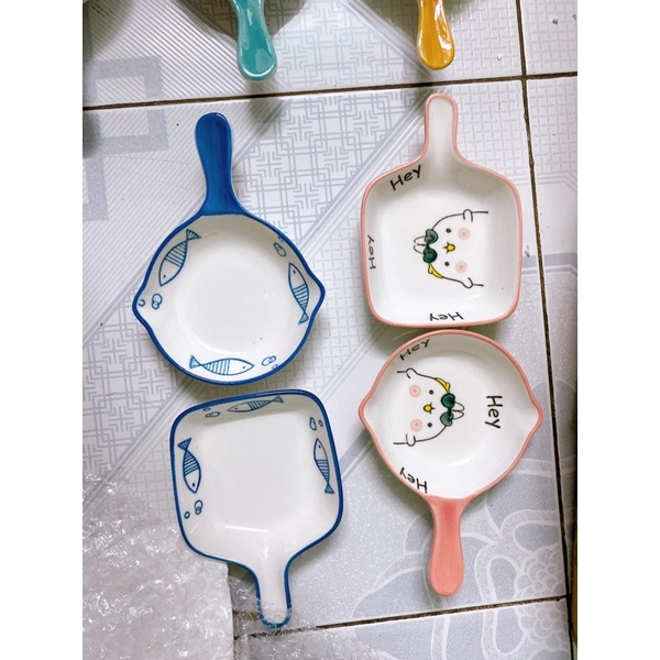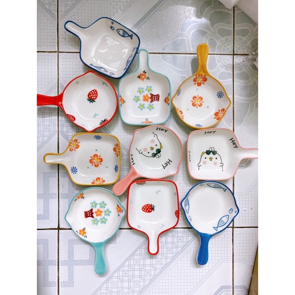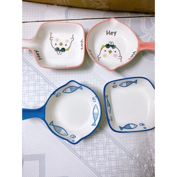 Giới thiệu (CÓ SẴN) Chén nước chấm, chén đựng đồ ăn kèm màu hồng có tay cầm phong cách dễ thương hoạt hình giá rẻ