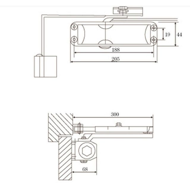 + Hai tay co di động là hệ thống khớp nối giúp chuyền lực từ hộp áp lực để đóng cửa.