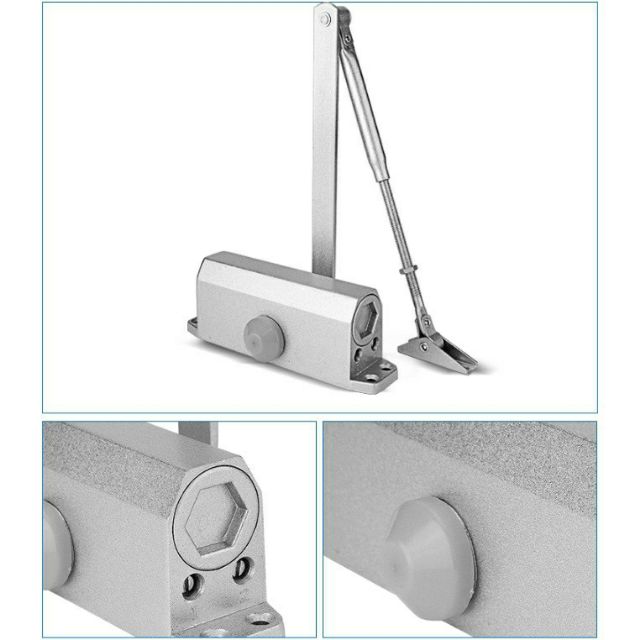 Tay co thủy lực dành cho cửa 25kg đến 55kg có điểm dừng.Tay co thủy lực(tay đẩy hơi) là thiết bị giúp đóng cửa tự động. Khi cửa mở, lực lò xo của tay co sẽ kéo cánh cửa vào và đóng lại một cách tự động, tạo sự thoải mái, tiện lợi cho con người. Điều này giúp cho cửa luôn duy trì trạng thái đóng, nhờ đó hệ thống cửa được bảo vệ tốt hơn, chống va đập khi có gió lùa.Tay co thủy lực thường được lắp đặt cho các phòng kỹ thuật, phòng lãnh đạo, nhà chung cư… Cửa được lắp tay co giúp chống ồn, chống va đập, bảo vệ tính riêng tư, ngăn trẻ nhỏ hoặc chó mèo tự ý ra ngoài khi cửa vô tình mở.Một số nơi việc lắp tay co là bắt buộc như cửa thoát hiểm, cửa phòng kho, phòng kỹ thuật, trường học, bệnh viện